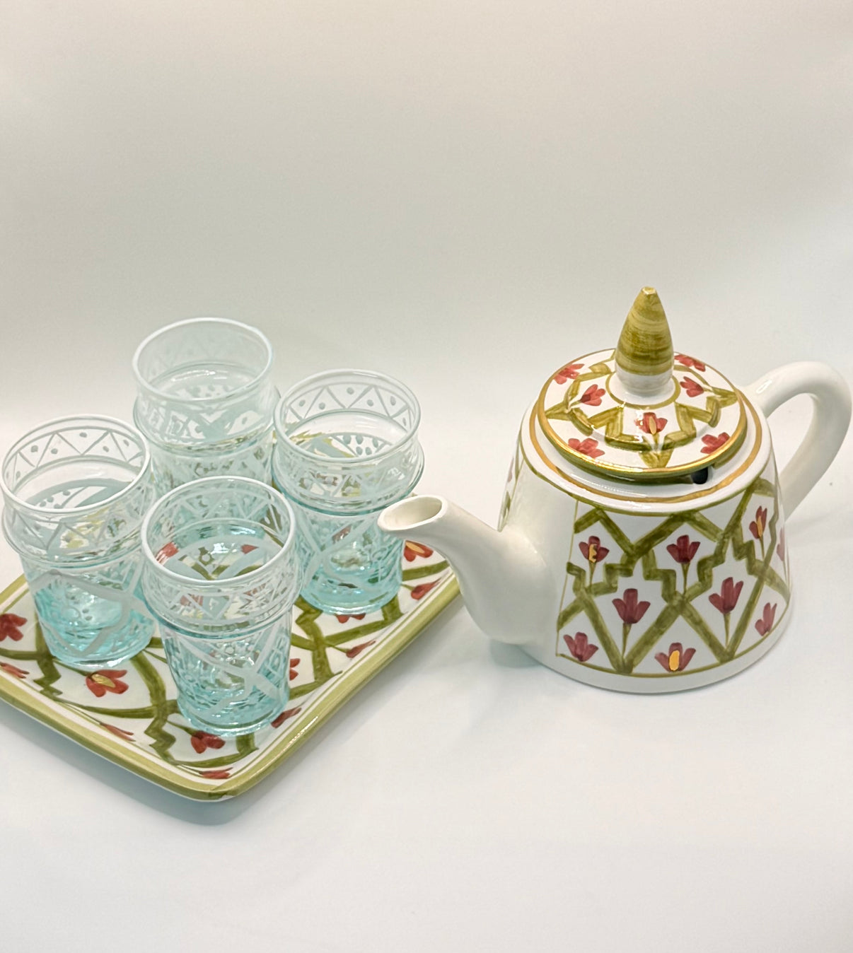 مثالية لطقوس الشاي أو التجمعات الهادئة، فهي تضفي لمسة من الفن المغربي الخالد والرقي الراقي على كل تجربة.